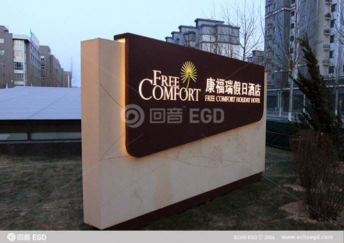 因?yàn)榫频觑L(fēng)格變化萬千,或西洋歐式,或中式風(fēng)情,或復(fù)古主義,或時尚現(xiàn)代,或田園之樂,或居家溫馨。所以,在酒店標(biāo)識牌的設(shè)計(jì)上,要注意其與真?zhèn)€股酒店的裝飾風(fēng)格合拍,不能太顯突兀。整個標(biāo)識牌的造型、外觀,如方形、閌形、橢圓形、拱形、波浪形、錐形、扇形、混合形等,應(yīng)與酒店裝飾一體化,要求簡潔明快,協(xié)調(diào)搭配。