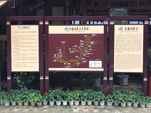 標識系統(tǒng)與公共設施(座椅、垃圾筒、小賣部、電話亭、廁所)保持協(xié)調,做到整體合理、和諧、美觀。設計標識造型、圖案、選擇標識材質、顏色、布置位置應考慮與自然環(huán)境相協(xié)調。 每一個景區(qū)都有自己的特色與個性,好的景區(qū)標識系統(tǒng)就像一個無聲的專業(yè)導游,傳情達意,讓一山一石、一草一木、一磚一瓦都賦予生命,都有機會被欣賞,好的標識也可以成為“導游小品”和“景觀小品”。